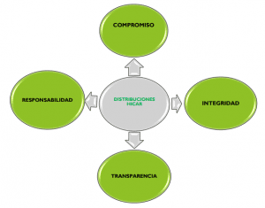 El Código de Conducta establece los criterios de actuación que deben ser observados por la empresa Distribuciones Hicar S.A.S en el desempeño de sus responsabilidades profesionales. Tiene como objetivo procurar un compromiso profesional, ético y responsable de todos sus Trabajadores, en el desarrollo de sus actividades en cualquier parte, como elemento básico de su cultura empresarial en la que se asienta la formación y el desarrollo personal y profesional de sus colaboradores. A tal efecto, se definen los principios y valores que deben regir las relaciones entre el Grupo y sus principales grupos de interés (trabajadores, clientes, y proveedores).